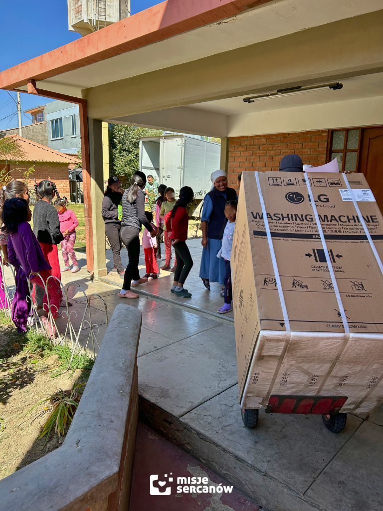 Popołudniowy przyjazd samochodu wiozącego poranne zakupy wywołał ogromną ekscytację wśród dziewczynek. W sklepie z AGD kupiliśmy jedną z największych pralek dostępnych w magazynie – o ładowności aż 20 kilogramów. Ciekawskie oczy dzieci śledziły każdy krok panów, którzy pralkę przywieźli, przenieśli do pralni i podłączyli.