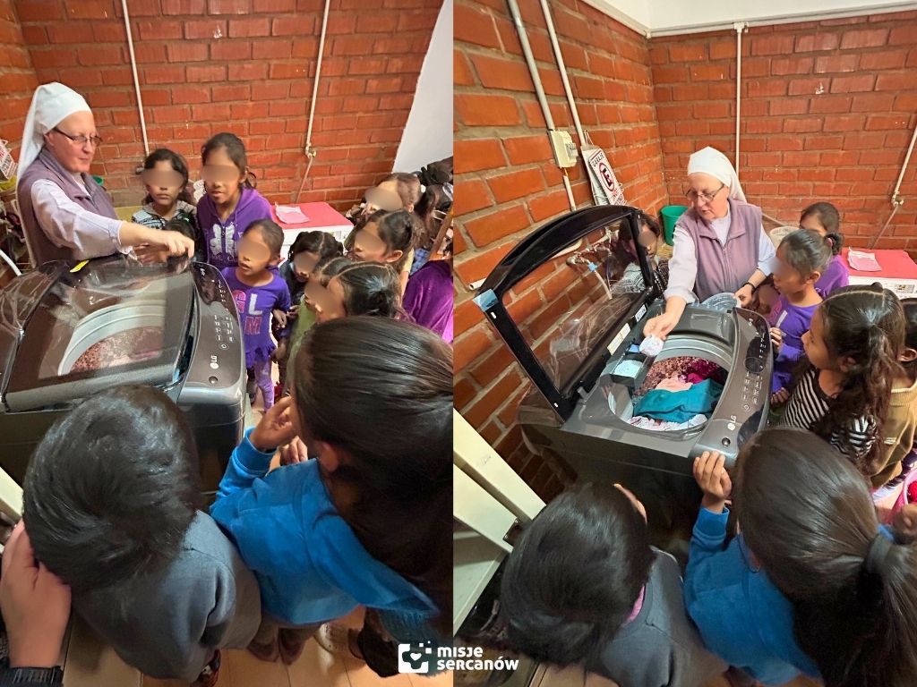 Chwilę później siostra Anna rozpoczęła szkolenie z obsługi urządzenia i tłumaczenie zasad jego działania. Dziewczynki robiły wielkie oczy – dotąd dla całego domu dziecka, w którym mieszka około 60 wychowanek, dostępna była tylko jedna mała pralka. Służyła wyłącznie do prania pościeli, a ubrania osobiste dziewczynki musiały prać ręcznie.